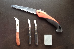 Nicht zu vergessen ist die richtige Säge zum fachgerechten Gehölzschnitt. Bei den Sägen hat sich in den letzten Jahren immer mehr die kleine unscheinbare Klappsäge durchgesetzt. Sie ist sehr scharf, leicht und gut geschützt beim Transport sowie bezahlbar. Auch der Schnitt ist sehr präzise und sauber. Vorteil bei den Schnittarbeiten ist, dass die Säge auf Zug arbeitet. Zudem können Sie damit dicht am Stamm arbeiten, ohne dass ein Stummel stehen bleiben muss.
