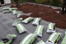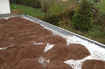 1. Auf der Schutzlage liegt eine Dränschicht, die das Überschusswasser der darüber liegenden Schichten aufnimmt und zu den Abläufen leitet. Die Dranschicht besteht meist aus Sand, Kies, Splitt, Lava oder Bims. Auch Recycling- Produkte auf der Basis von Tonziegeln kommen zum Einsatz.