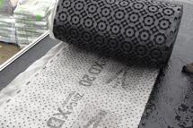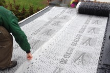 2. Darüber liegt eine Filterschicht (Filtervlies). Durch sie fliest Wasser aus der Vegetationsschicht in die Dränschicht. Ihre Filterwirkung hält feine Boden und Substratteile zurück und verhindert ein Verschlammen der Dränschicht.
