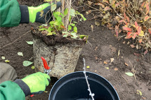 Wurzelballen anreißen, aufschneiden.
