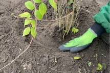Bei größeren Gehölzen vorsichtig mit dem Fuß festdrücken.
